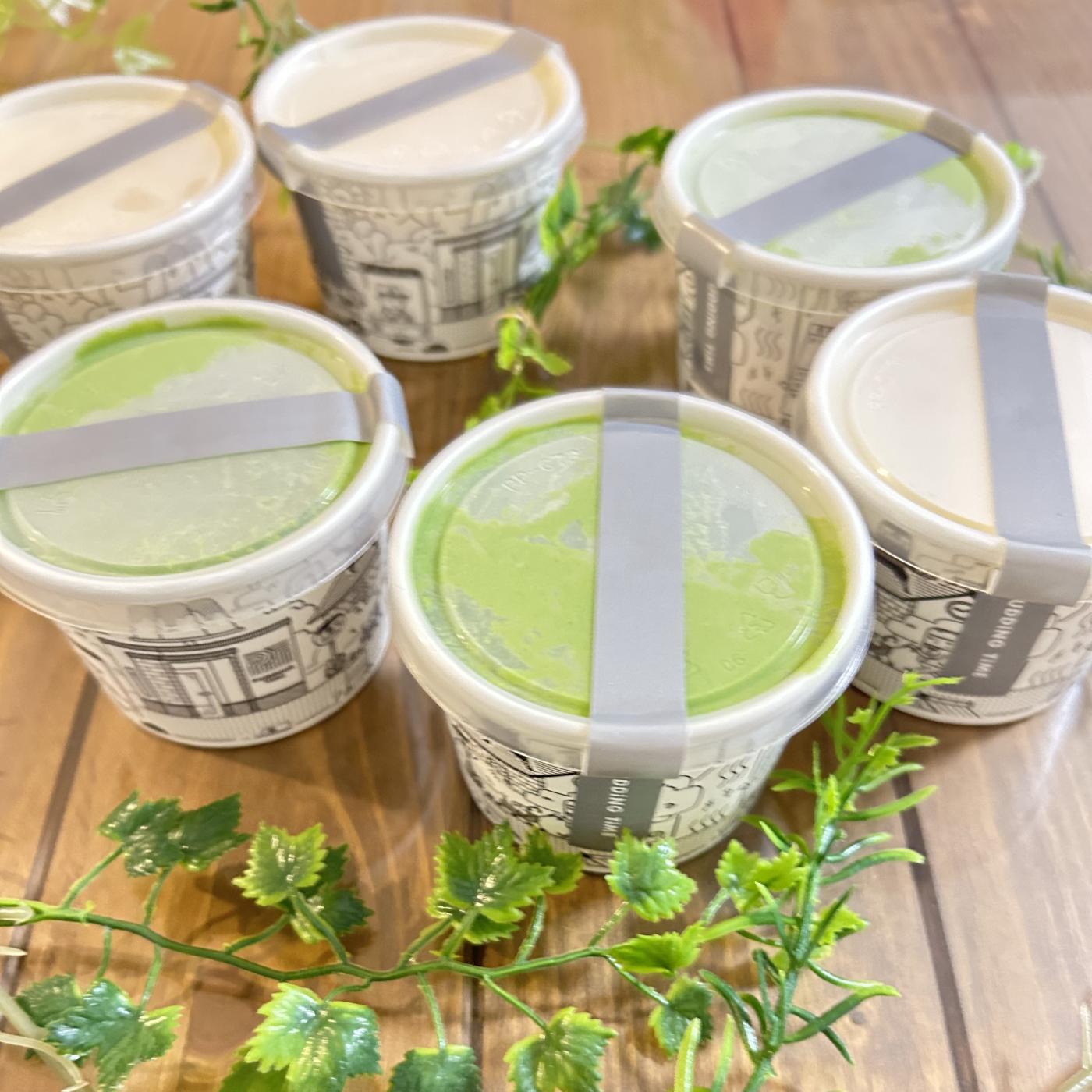 PUDDiNG TiMEのプリン、かためカスタードと抹茶が3個ずつ入った贅沢なBOXです🍮💚