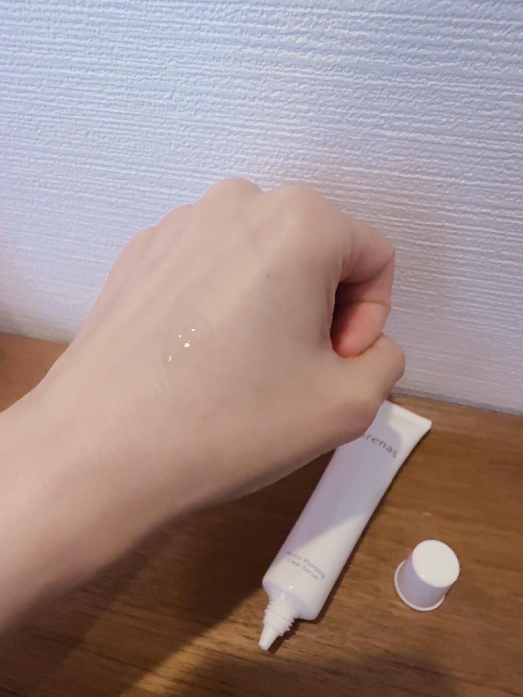 透明ジェル状クリームで伸びが良く、ベタつかず肌なじみもいいです。