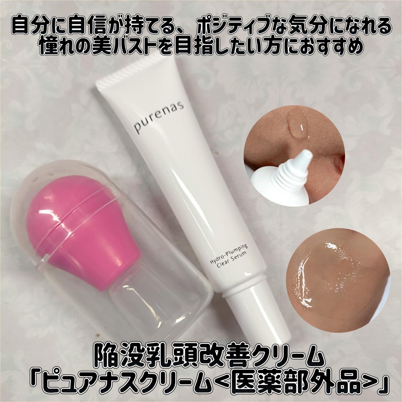 陥没乳頭改善クリームの「ピュアナス」のレビューです。 透明のジェルでコッテリした感じのテクスチ...