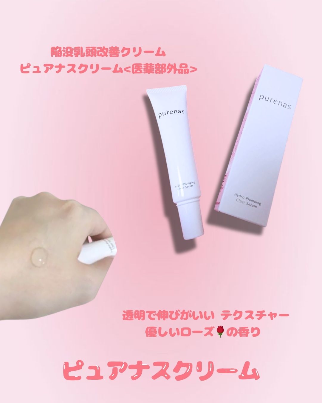 陥没乳頭改善クリームの「ピュアナス」のレビューです。 透明のジェルでコッテリした感じのテクスチ...