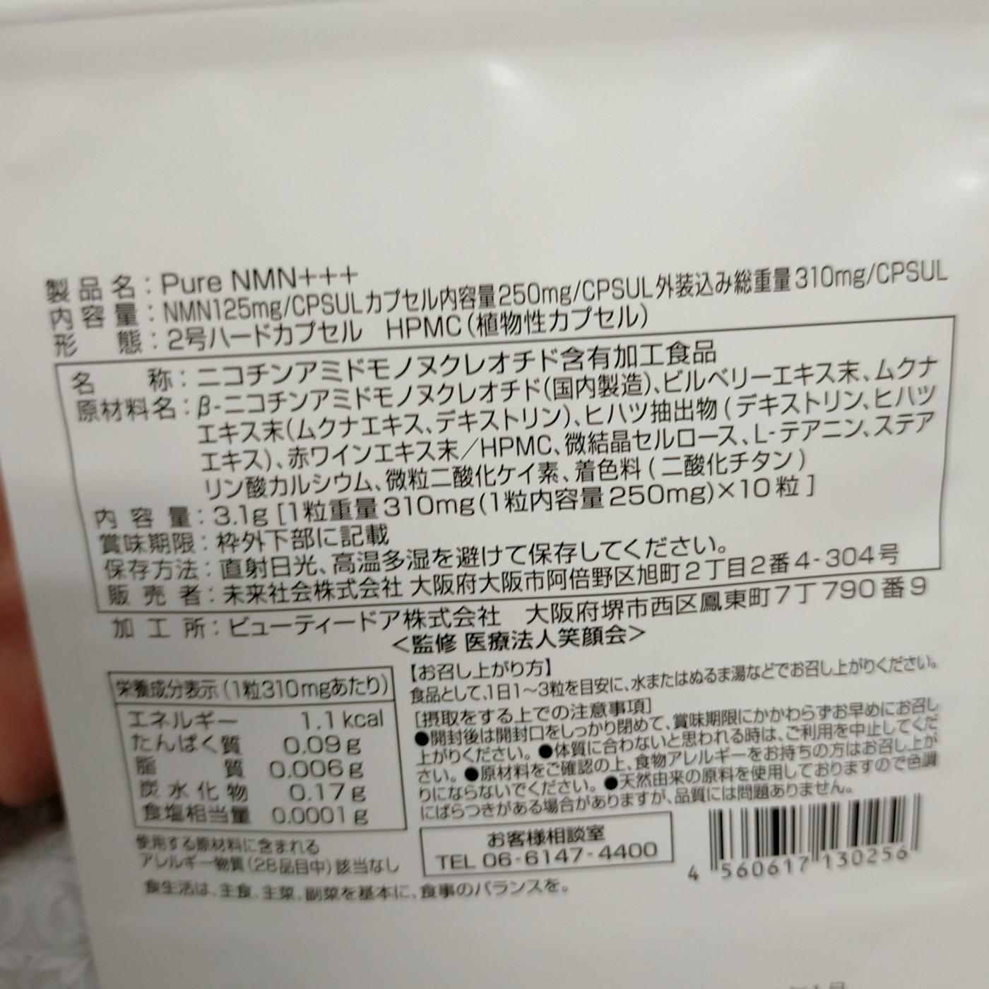 PureNMN+++をお試ししましました。 こちらはサプリメントになります 笑顔寿命を伸ばしたい、という...