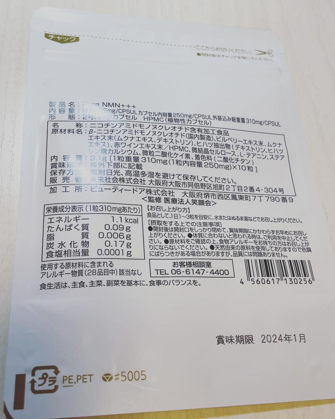 (未来社会株式会社 様のPure NMN+++)についてのレビューです☺︎