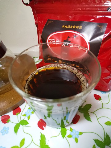 早速飲んでみると、私の苦手な酸味が少なくてやや苦味の方が強いコーヒーです。