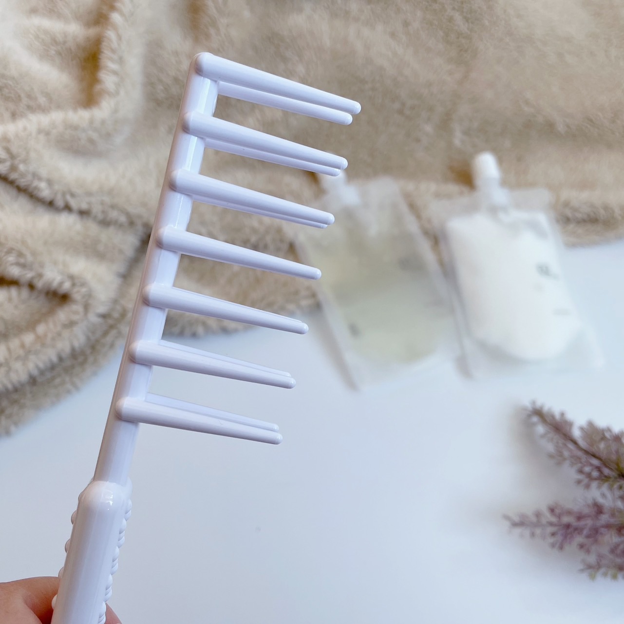 「ヘアソープ」と「トリートメント」それぞれ50gずつで約5回分のトライアルセット。さらにシャンプー中に髪の毛の絡まりをほぐせる「インバスウェットコーム」もついていました✨