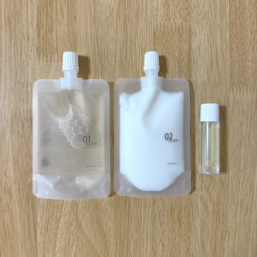 パウチタイプのヘアソープ、トリートメント5日分と、