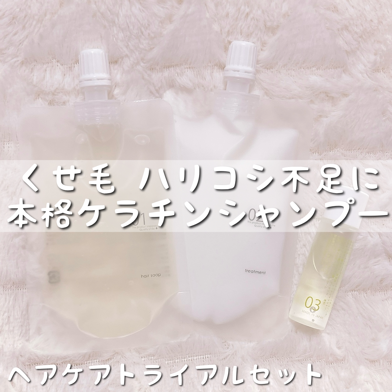 ヘアソープ:50ml トリートメント:50g ヘアオイルサンプル:10ml のトライアルセットです。 ヘアソ...