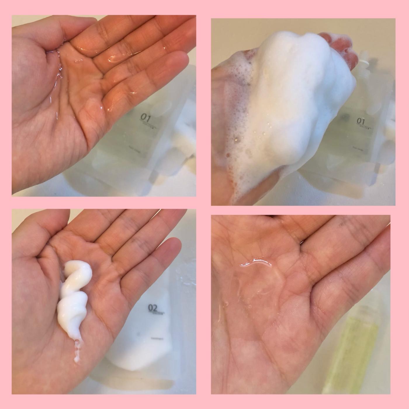 ケラチン由来の高級洗浄成分を贅沢に配合。洗うと同時に、クセ毛の内部構造に栄養を補い整えるケアも。