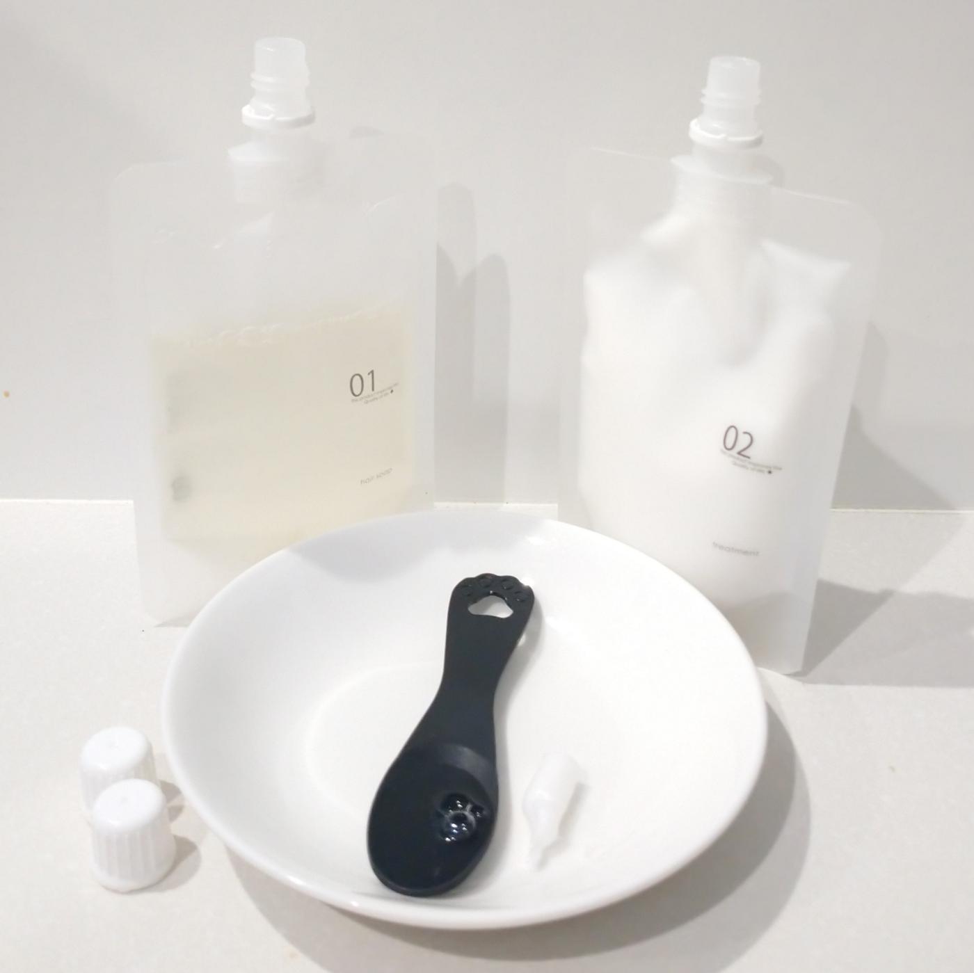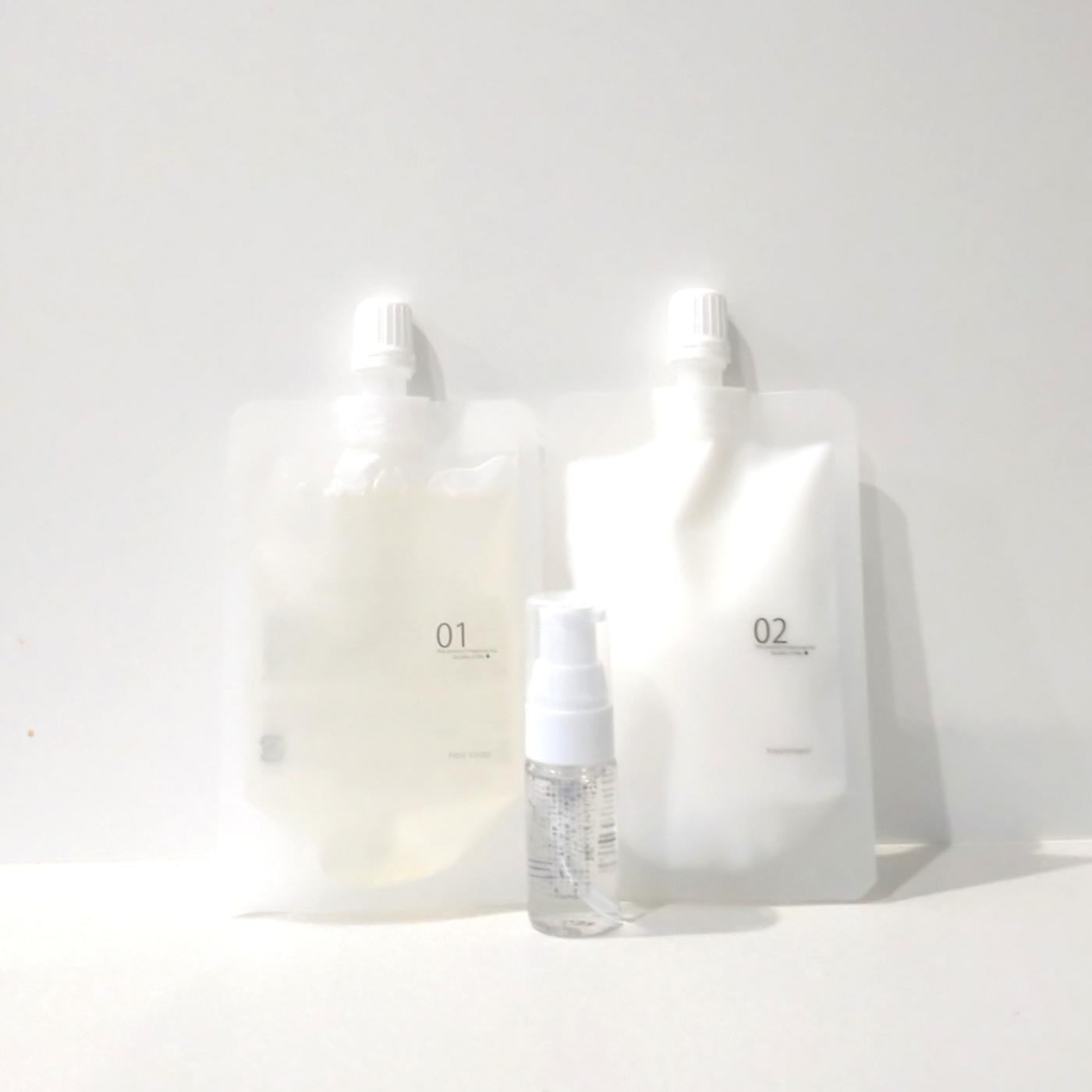 とろっとしたシャンプーと、こっくりとしたトリートメント。パウチだけど小さいから扱いやすかったです。5回分くらいのトライアルセットなので旅行でもっていくのにも良さそう◎