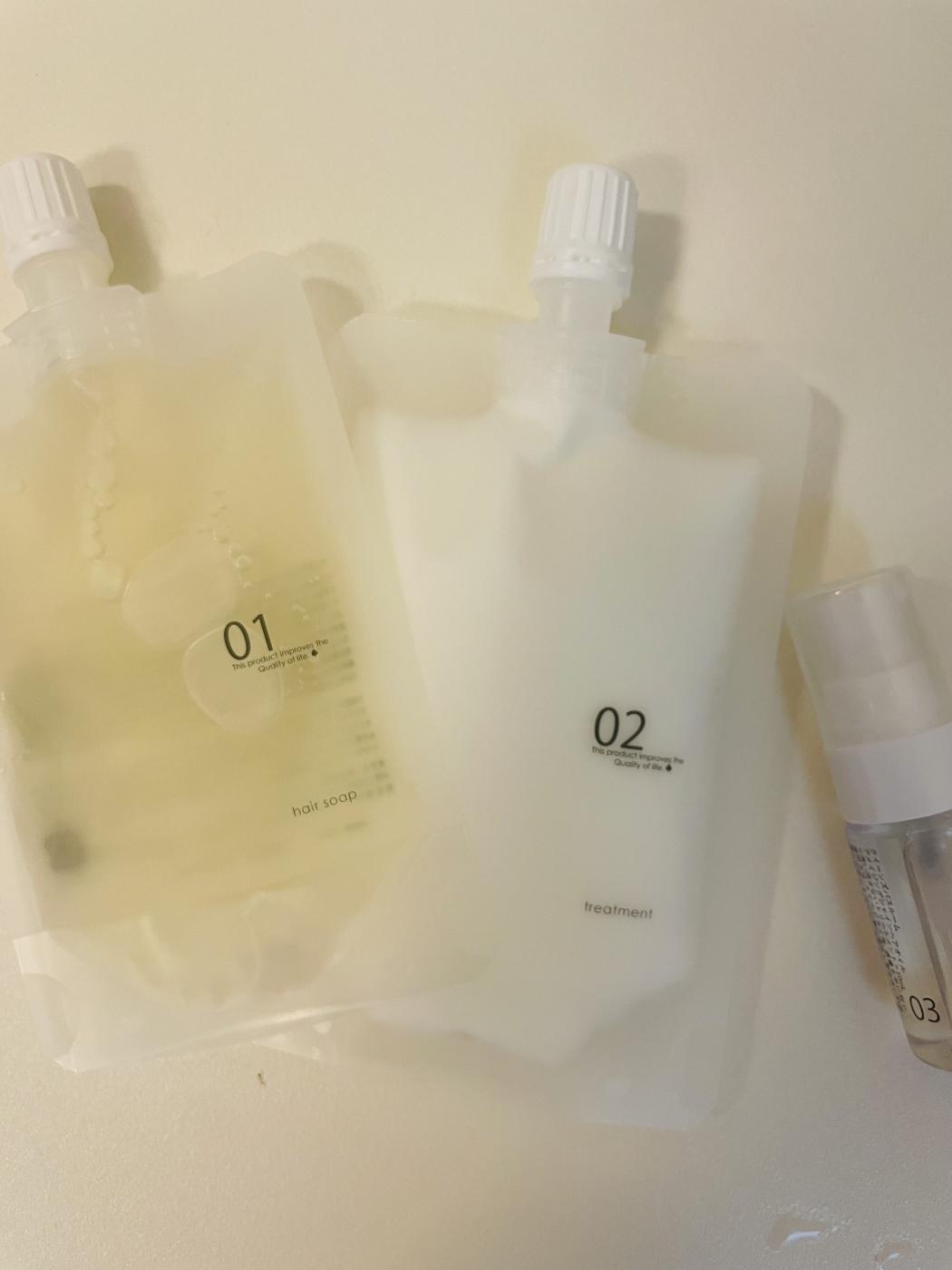 トリートメントは、ほどよい柔らかさ。毛先を中心に揉み揉みして、5分くらい放置してみました。その後洗い流すと、つるっとした髪になりました。人によってはこの段階でも指通りが悪いこともあるそうですが、私はシャンプーよりは指通りがいいなと思いました。