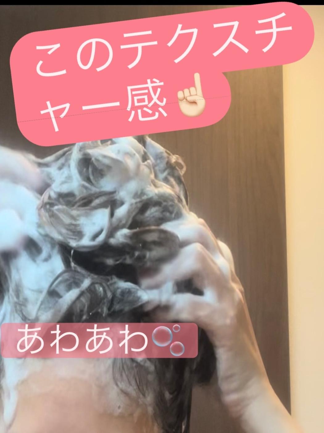シャンプーは濃密な泡立ちで、柔らかくきめ細かい泡が髪と頭皮を優しく包み込みます。