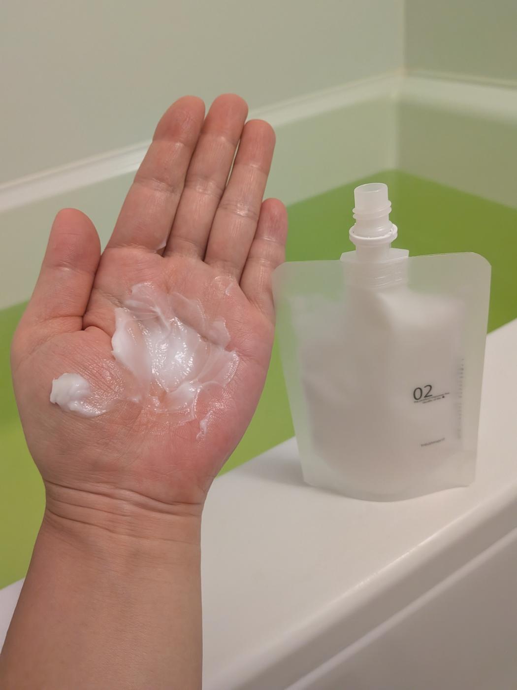 少し固さがありますが、スルスルと髪に馴染みます。主に毛先につけて、5分ほどなじませます。湯船に浸かったり、身体を洗ったり、ちょっと掃除していると5分なんてあっという間ですね。