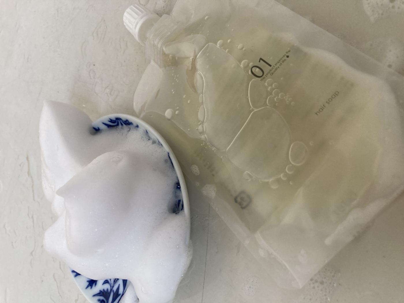 シャンプーは透明でとろみのあるテクスチャーで泡立ちがとても良く、