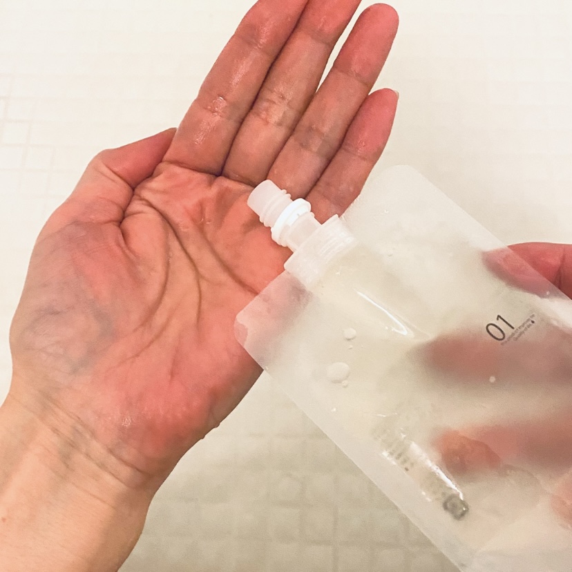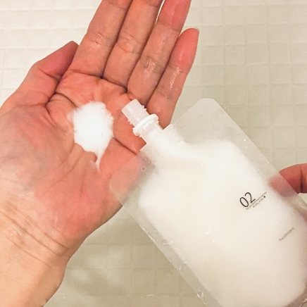 シャンプーを手に取り、根本に近い部分で泡立てます。ふんわり柔らかな泡が出来るので、マッサージしながら優しく使用出来ました。
