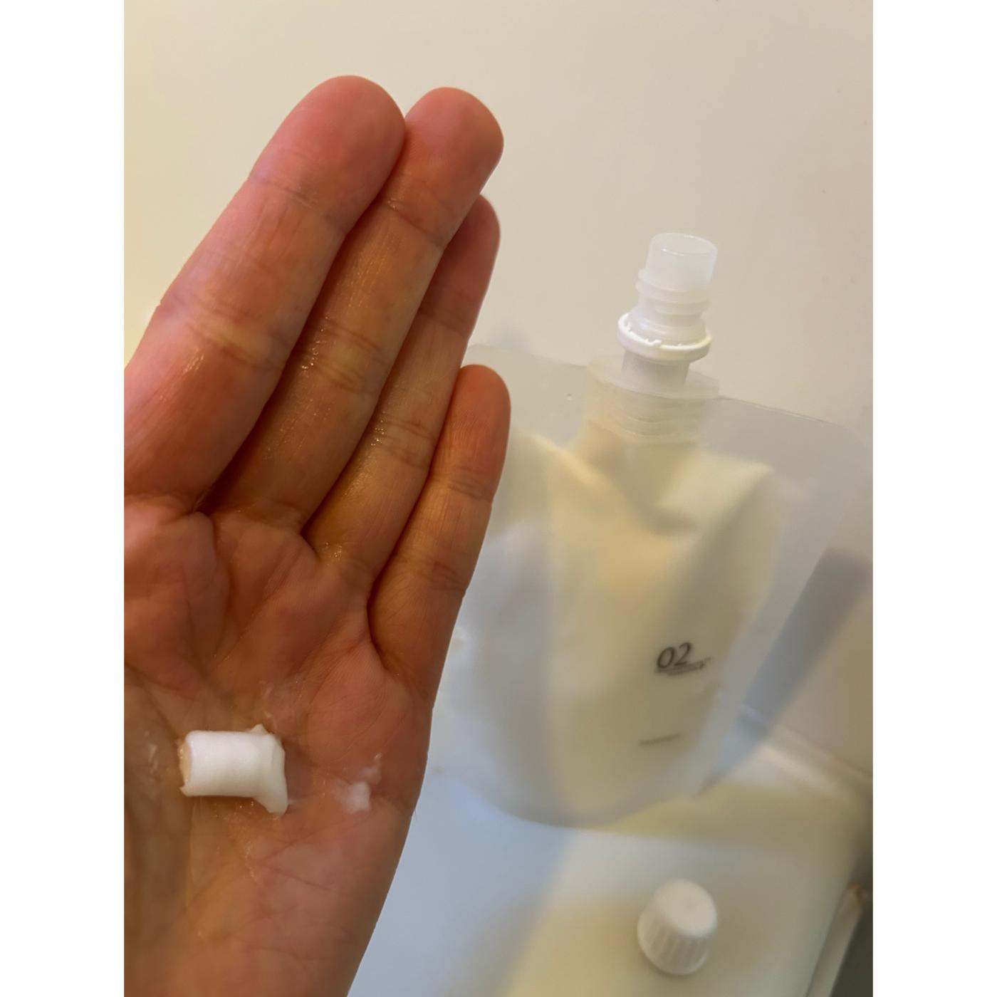 泡立ちもよく根本の方から丁寧に指で洗い、流します。それだけでもいつもシャンプーした後より潤ってるのを実感します。