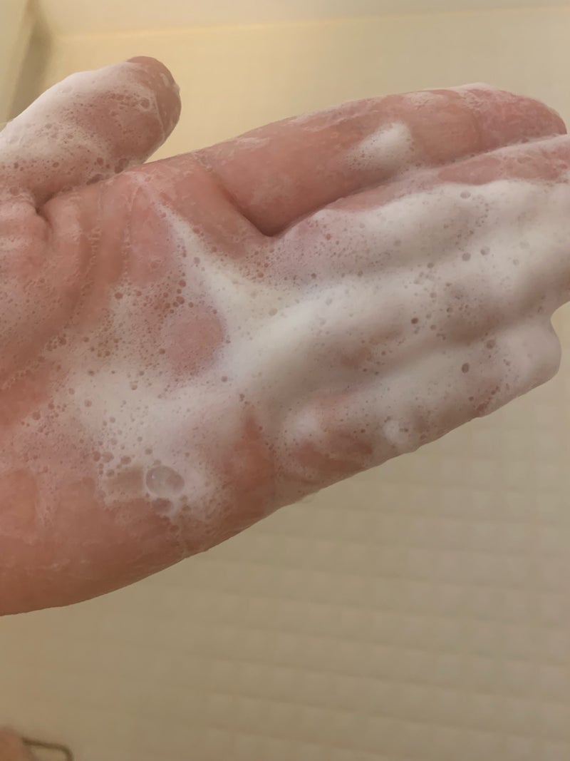 2〜3分泡がついたまま放置した後、お湯を含ませるようにして洗い流します。