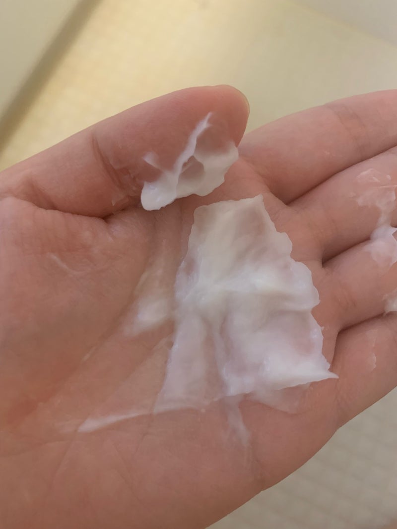 最初は硬めのテクスチャーですが、きちんと伸びますのでご安心ください。