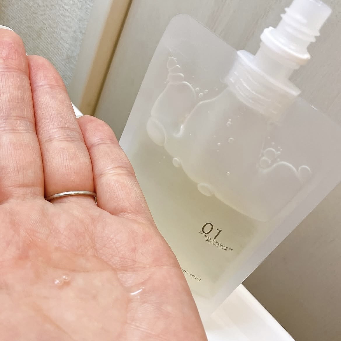 まず印象的だったのが、泡立ちと洗い心地。泡自体はふわふわというより少ししっかりめで、髪に密着するような感覚でした。洗っている最中はきしみを少し感じるものの、これはケラチンが多く配合されている特徴とのこと。実際に乾かしてみると、まとまり感が出ていて仕上がりとのギャップに驚きました。
