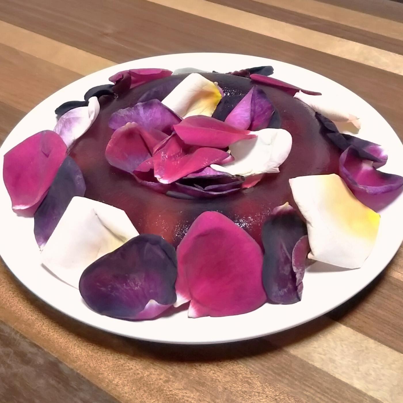 たっぷりのバラに覆われたゼリーはとてもゴージャスな雰囲気ですね。