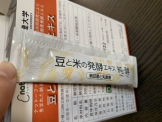 近畿大学薬学部との共同研級により、大豆をオリジナルの納豆菌で発酵させて抽出したエキスとお米(コシヒ...