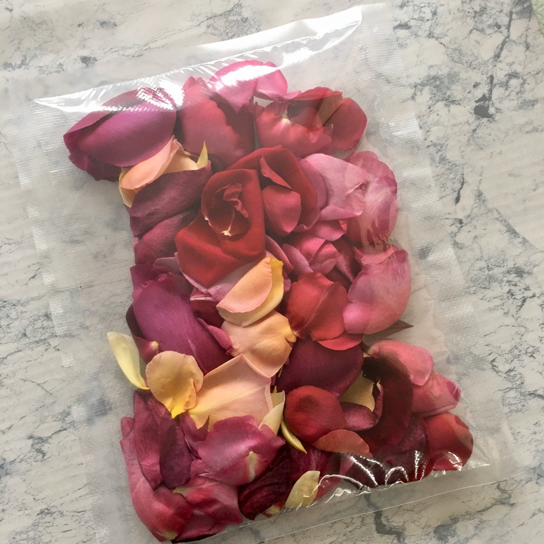 奈良県で栽培されている食用バラ 【ローズベジ】を頂きました? 透明の袋に花びらが たくさん入った常...
