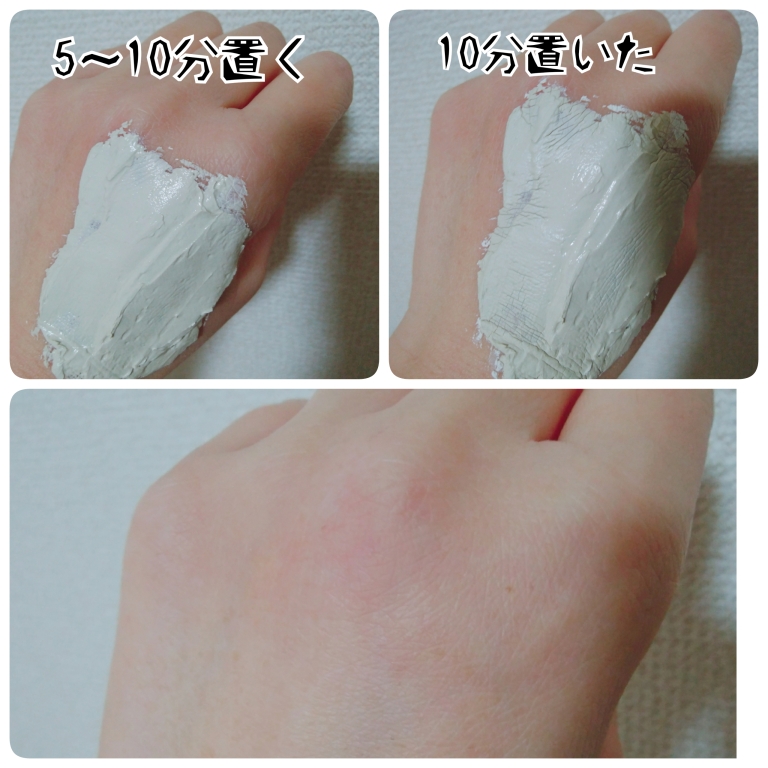 クレイの量が多いので精製水に漬かることがなく、でも混ぜると粘りがでるようなので混ぜるの禁止だったのでそのまま粉っぽいまま15分放置しました。