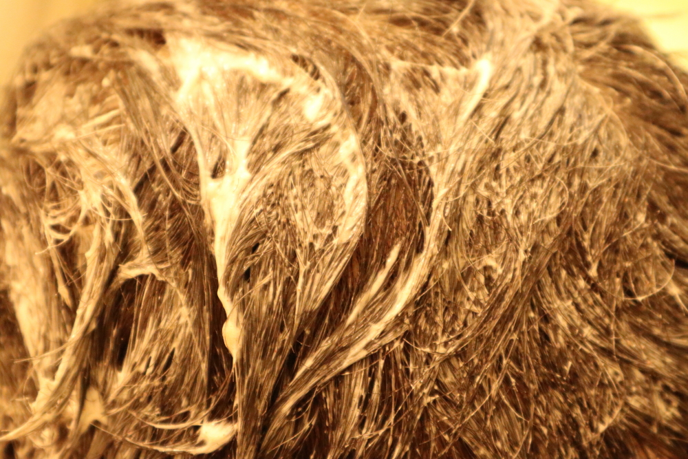 シャンプーをした後に、ランブットを付属のカップ1杯とって髪にまんべんなく塗布します。