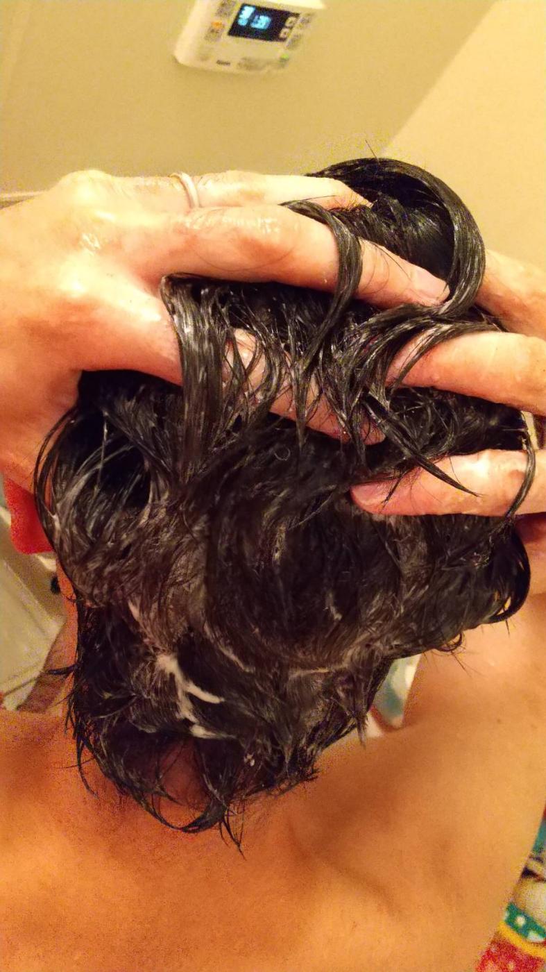 週に2回、カップ一杯分を頭皮になじませて(20〜30秒マッサージ→15〜20分程そのままで浸透させる)洗い流すだけと使い方も簡単なので、面倒くさがりな夫も続けられているとの事。