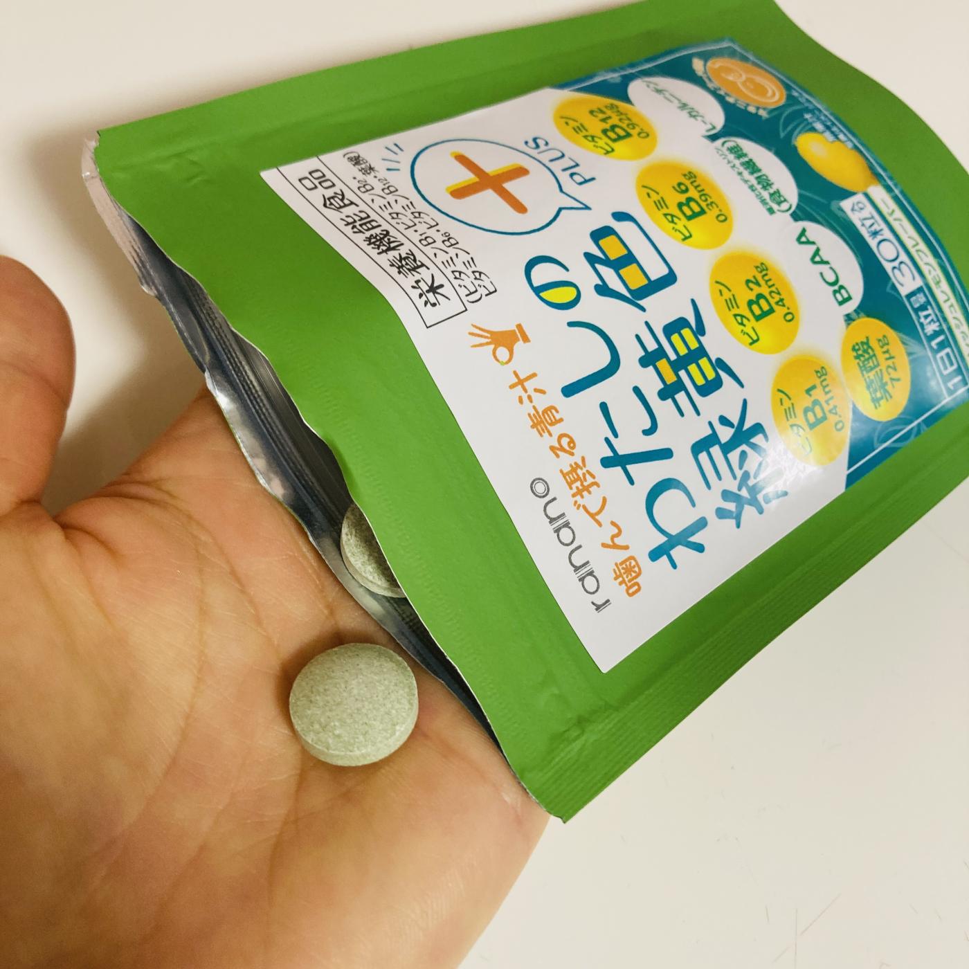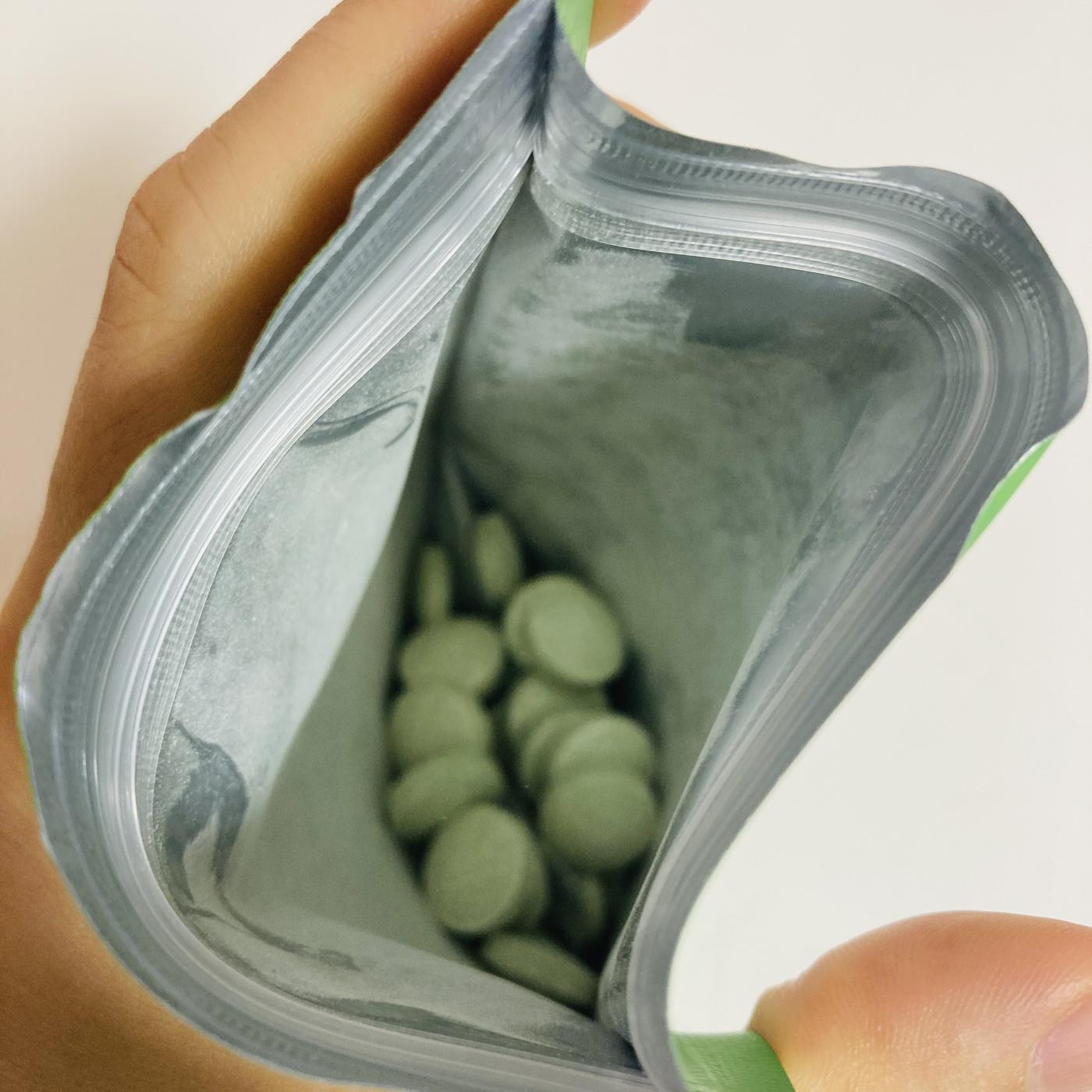 こちら、水なしでも大丈夫、どこでもいつでも簡単にとれるマルチサプリです。水やコップなくても、噛んで食べるのでオーケー!便利なアルミパウチ入りなので持ち運びもしやすいですね。あ、サプリ飲み忘れた、とか、なんだか体調悪いなーという時にすごく頼りになる存在です。