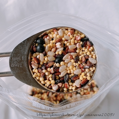使い方は簡単で雑穀大さじ1足したら水も同じ量足すだけです。