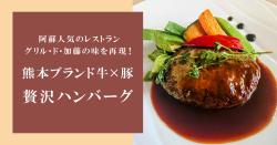 熊本県産「あか牛」と熊本県ブランド豚「りんどうポーク」のオリジナルブレンドのひき肉を使用している贅沢なハンバーグです。