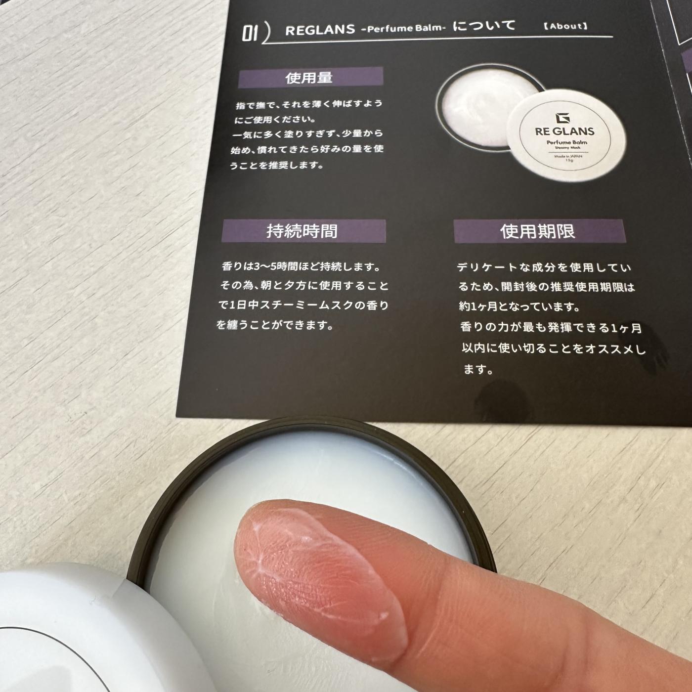 コエタスモニターキャンペーンより、リグランス パフュームバーム頂きました!!男性用の塗る香水のようなものですが保湿効果もワックスとしても使えるし万能品🤲人の視覚から入る情報は0.7秒。しかし香りはそれよりも早い0.2秒以下と言われ視覚よりも早く脳にアプローチするそうで、こちらのバームの究極にモテる「スチーミームスク」の香りがすぐにワンランク上の男になれるようエスコートし、浸透してくるそうです😊指で撫でると、肌音で溶けていくのでそれを薄く伸ばすように首筋、手首、耳裏、腕、髪の毛、膝の裏、足首など自分の身体の部位の気になるところへ塗ります!身体に塗ることに抵抗がある方でも、衣類や名刺、デスクフレグランスも使えるそうです🥰肌に優しいので安心!私は元々ムスクの匂いが大好きなので、これを旦那につけて貰えると凄く癒し効果抜群で嬉しいなあと思い、渡しました🤣💕自分でもつけてみましたが、ベタつきもなくすんなり馴染むし、とにかく匂いが良すぎて🥹女性の好みを分かって作られていることに感動しました😌✨️
