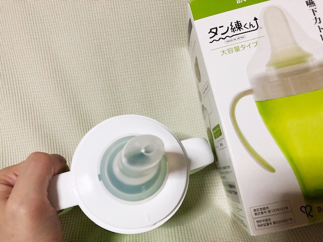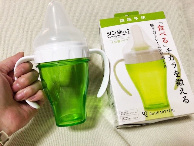 中身が少なくなってきたら、タン練くんを上に傾けますが、顔は正面を向いたままです。