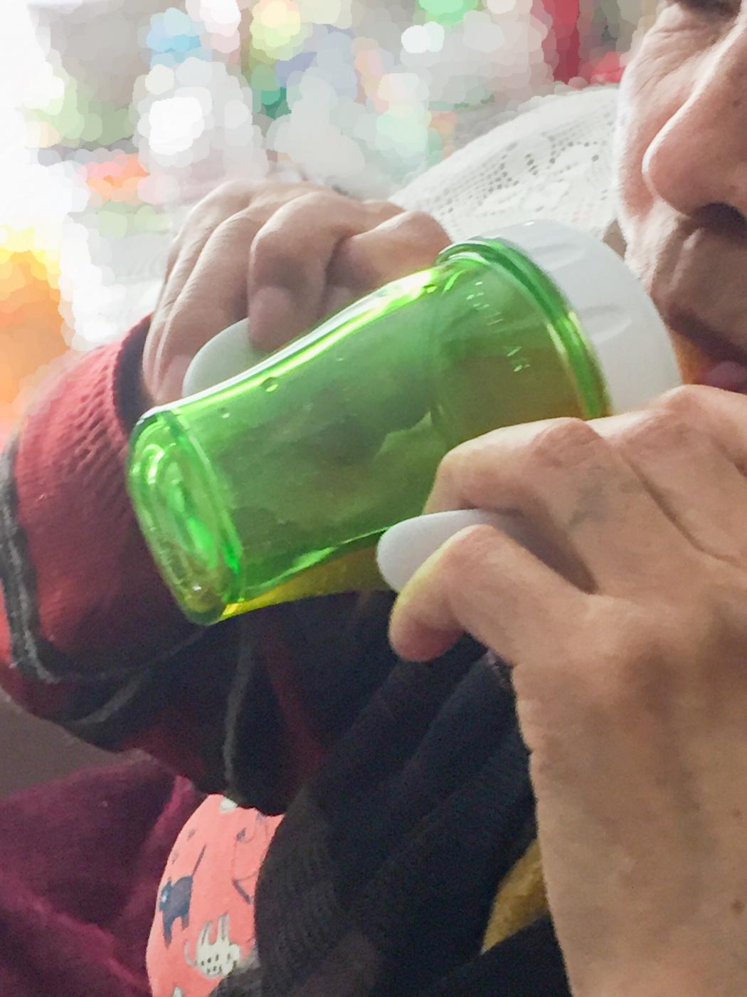 義父は最初、哺乳瓶型に照れたのか?