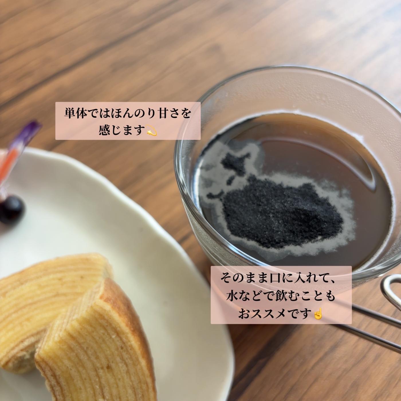 中には、京都産竹炭の微粉砕パウダー使用した、きめ細やかな、黒いパウダーが入っていて、単体ではほんのり甘さを感じます💫✨