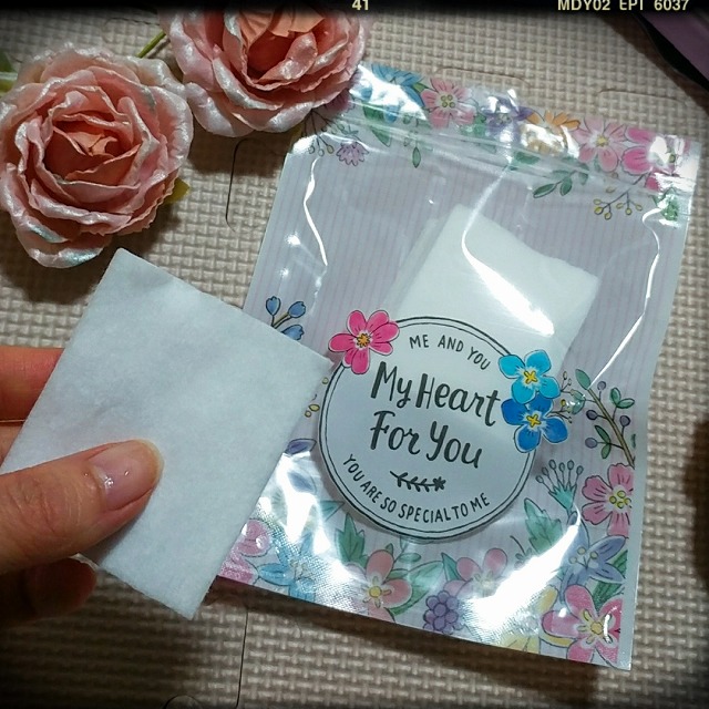 クレンジング後は、水で濡らしたコットンで拭き取ります。