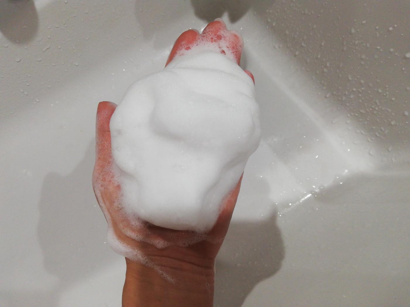 泡立てる前に、水に少し濡らして触った時に、とっても保湿力高そうだな〜と思いましたなんというか、オイルっぽい感触がする感じですかね(・o・)