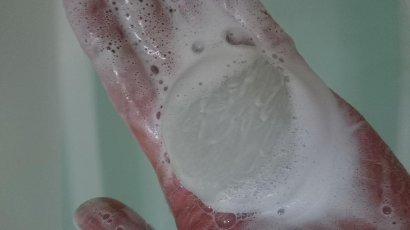 泡立ても簡単でまずは、ボディーを洗ってツルツルになります。そして、洗髪ですが、こちらは泡立てしたゆらぎ乃せっけんに市販のシャンプーを足して洗髪しています。揉みこむようにゆっくりと血行が良くなるように洗っています。2日目くらいから髪質がキュキュっと締まってきた感じがあり、洗ってすぐは頭皮が少し温まります。血行が良くなっているんだと実感できています。特に薄毛や抜け毛で悩んでいるわけではないのですが、予防の意味でも効果があるのかなと思っています。そして洗顔。泡立ててこちらもゆっくりと肌に刷り込むように円を描いて洗っていきます。当然お肌はツルツル。汚れもしっかり落としてくれています。