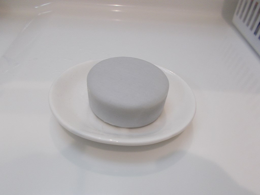 見た感じは、写真の通りすこし灰色がかった色で、少しせっけん独特のにおいがします。
