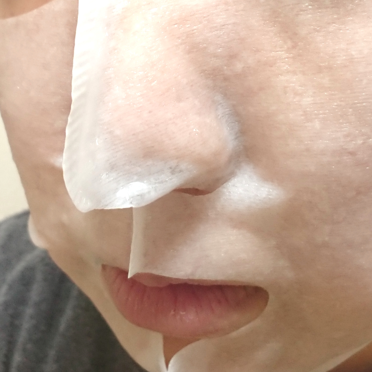 一般的なシートマスクだと、浮いてしまったりカバーしきれなかったりする鼻やあごも、すっぽりマスクを覆いかぶせることができます。