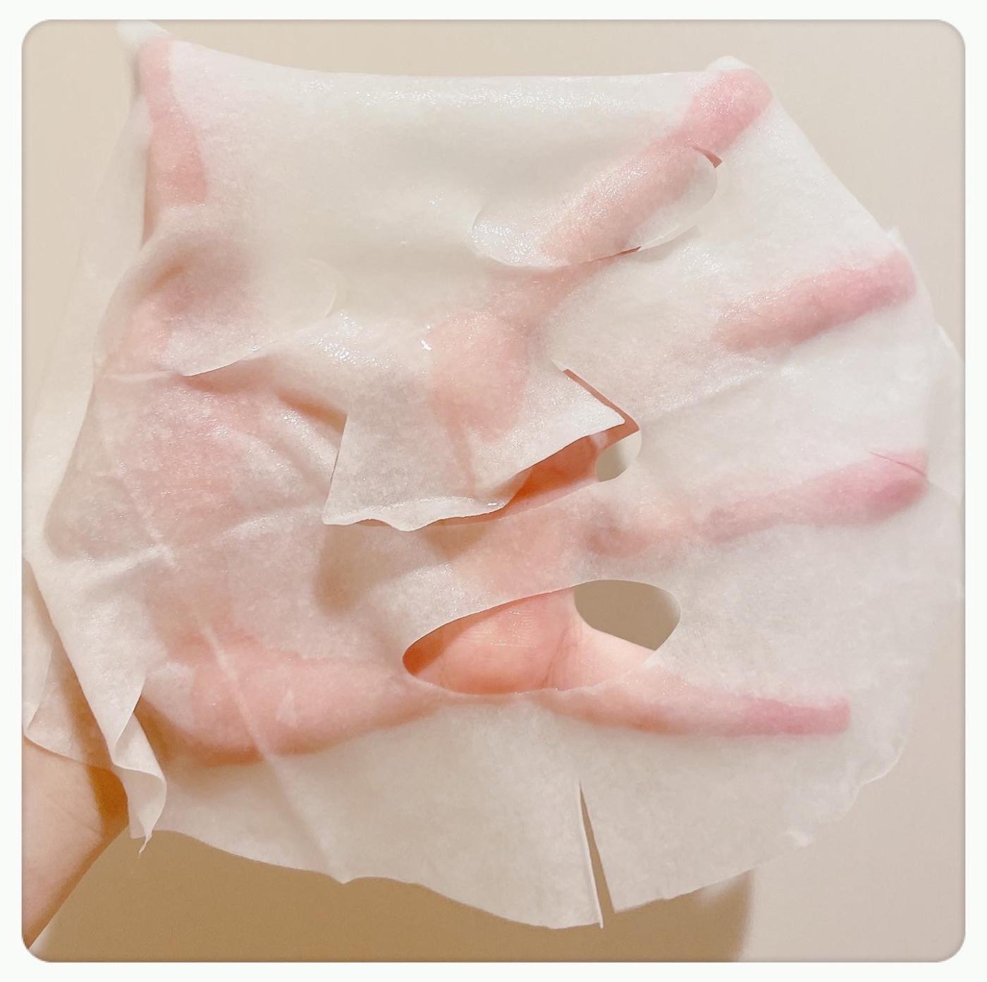 したたり落ちるほど美容液がひたひたで、厚みのある大判シートには切れ込みが入ってて顔にピタッと密着しやすい。