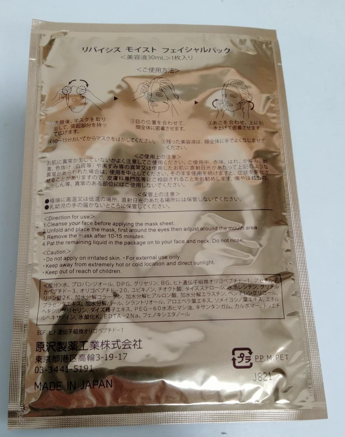 リバイシス モイスト フェイシャルパック(美容液30ml)をお試ししました。