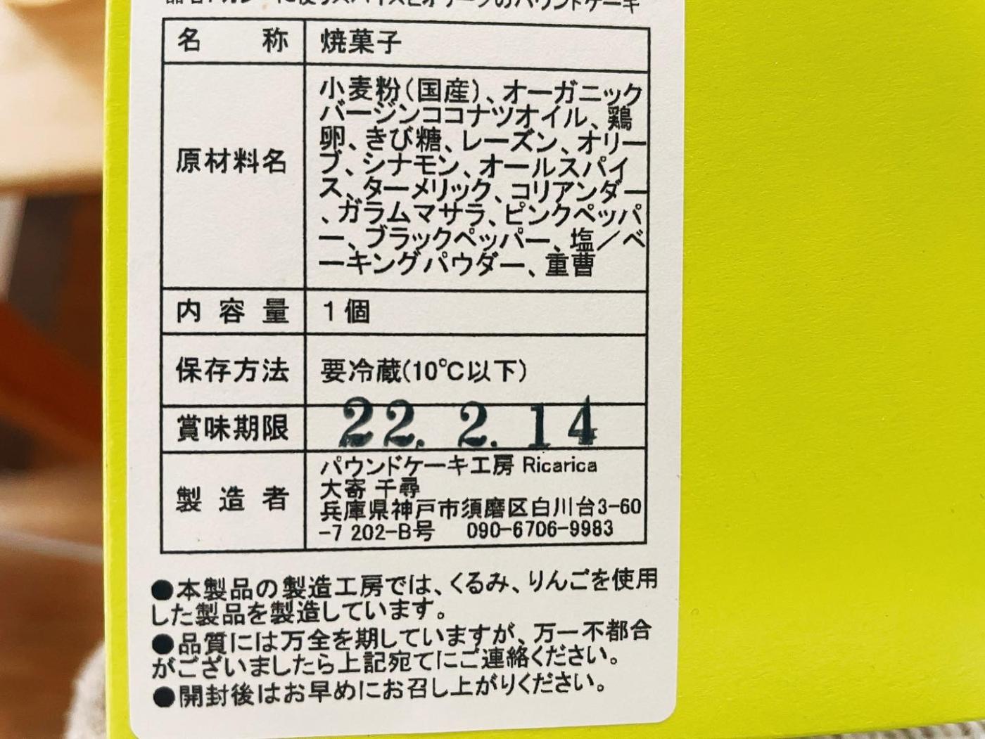 今回いただいたのは“カレーに使うスパイスとオリーブのパウンドケーキ”