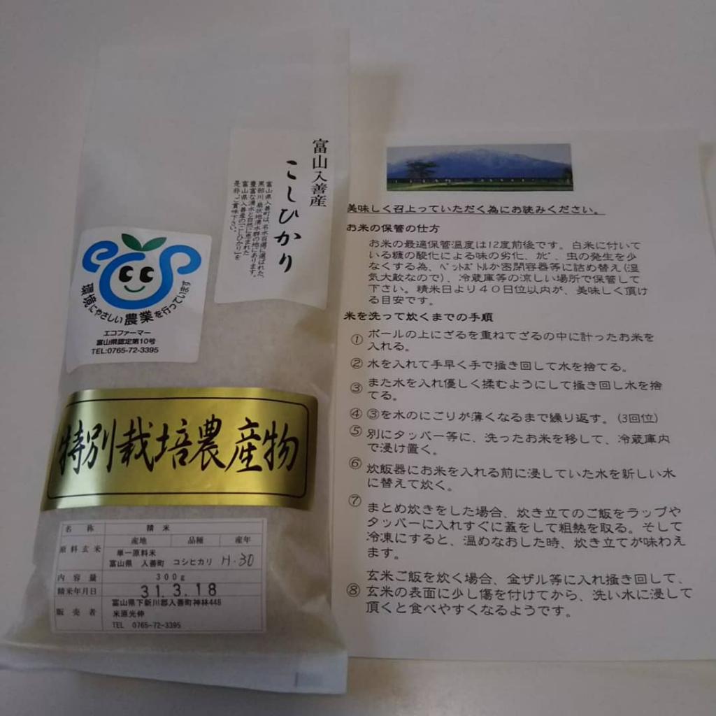H.30産新米 富山県産特別栽培米こしひかり 白米300g ライスヒルさまの、こしひかり300gをいただ...