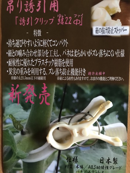 今回は「誘引クリップ結22Φ お試し10個」を使用しました。 バネは柔らかいのに ズレ落ちにくい仕様...