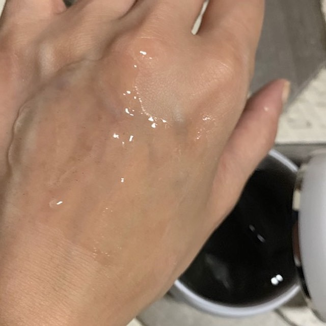 みずみずしいジェル状のぷるんとしたテクスチャーですが、肌に伸ばすとサラっと浸透。