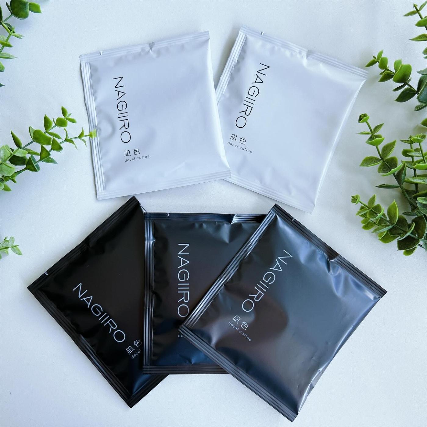 モニターで頂いたデカフェドリップバッグ NAGIIRO -凪色-のレビューです。 黒と白の2種類で、黒いほ...
