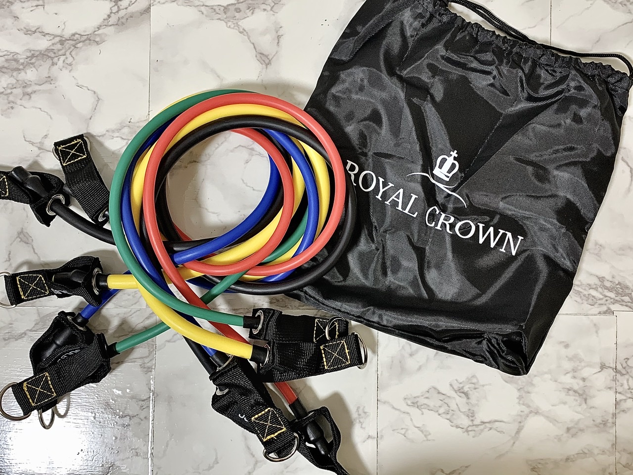 おうちでできるROYAL CROWNさんのトレーニングチューブを使った筋トレ✨ 強さの違うトレーニングチュー...