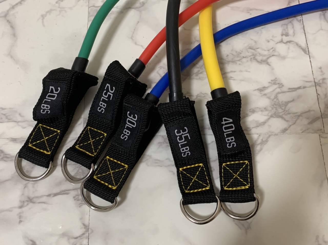 トレーニングチューブは合計5本入っていてそれぞれで負荷が違います!