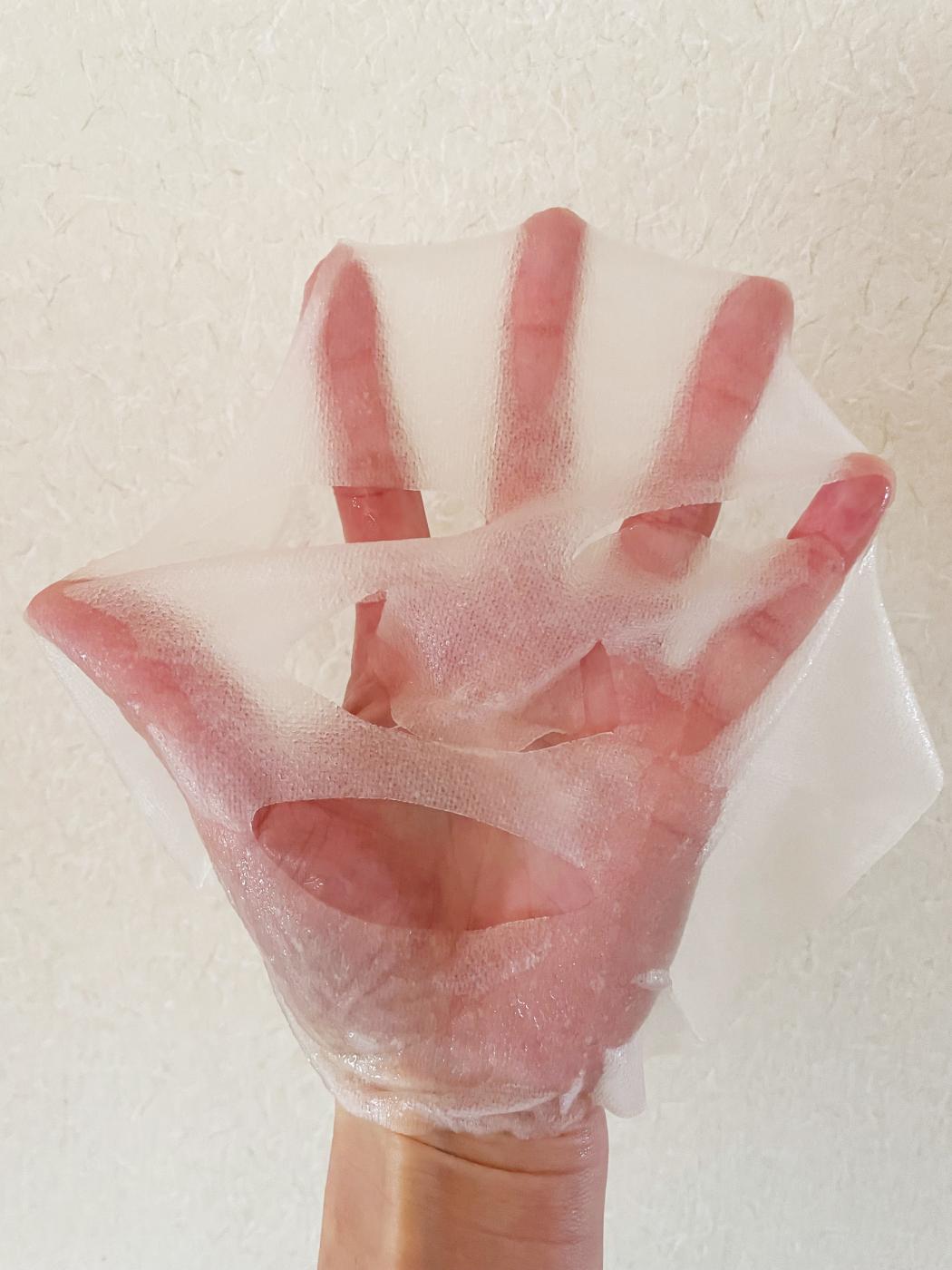 今まで使ったシートマスクの中でもダントツの薄さです。広げて顔に着けてみると、薄いからこその密着感が絶妙でした。今までは、なんとなくシートマスクって厚いのが上質みたいな先入観があったのですが、このマスクは薄くても扱いやすくて顔全体にピッタリフィットしてくれました。美容液もヒタヒタたっぷり入っています。余った分は首・デコルテラインまで塗りたくっています。このマスクをつかった翌日は、肌の状態がとても良いです。隅々まで美容成分が行き渡っているような、もちもちしたお肌になっています。ハリが出るので毛穴も目立たなくなり、ファンデーションがきれいに塗れます。肌が整っていると、メイクも崩れにくいです。私にとってはデイリーマスクではなく、特別な日の前日に使いたいスペシャルマスクですね。