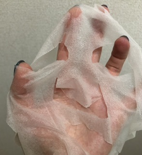 とろんとろんの化粧水みたいな、顔に広げる時目の部分の穴とかが少し繋がってたからかるくちぎらないとぺろっとならない。